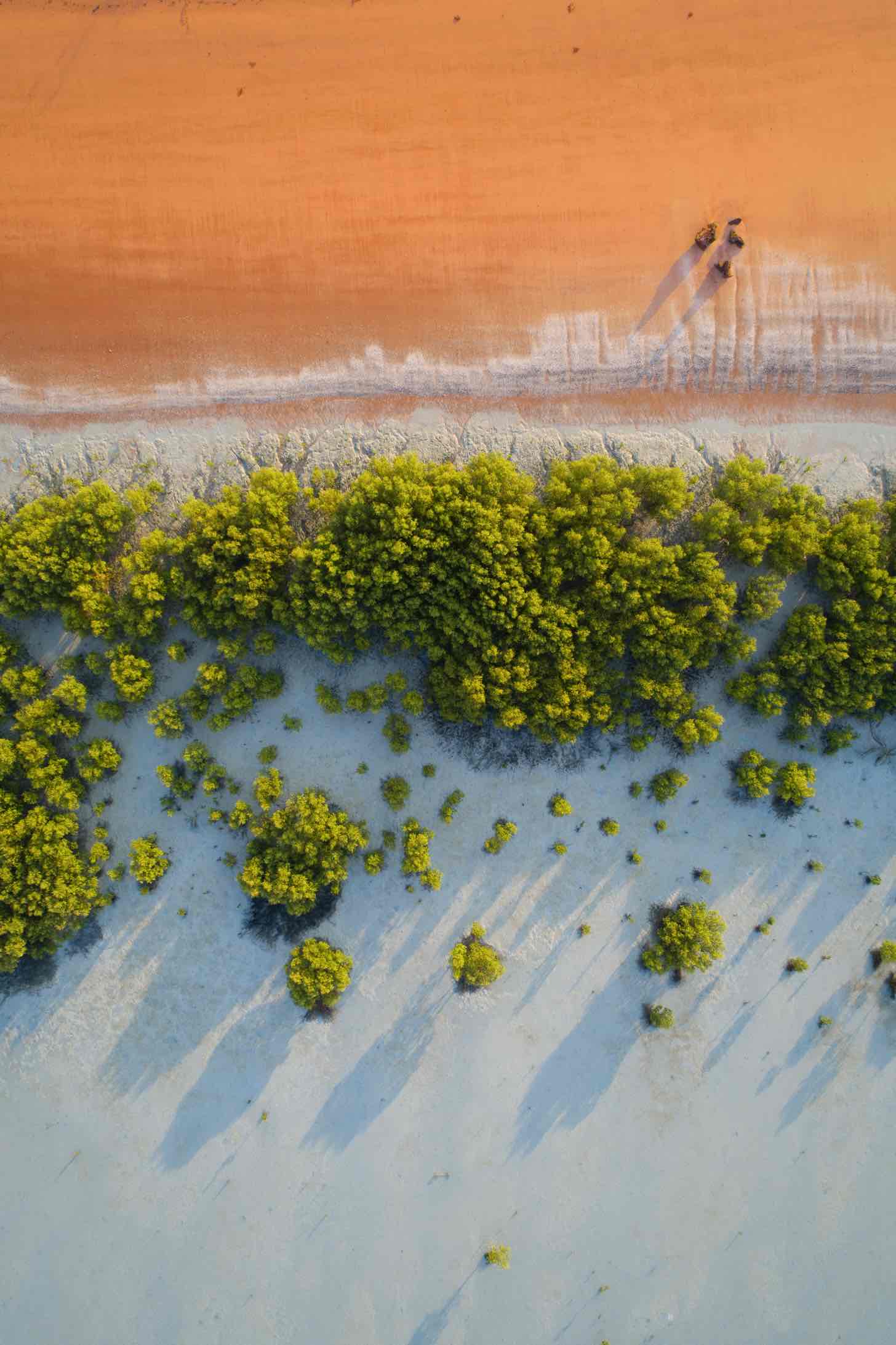 This striking photograph of The Kimberley in Western Australia captures the essence of the Australian outback. Here, the rich pindan earth harmoniously converges with vibrant green bush and stretches of pristine white sands and blue ocean waters, creating an awe-inspiring tableau of our sunburnt land that deserves a place of pride in your collection and in your space.